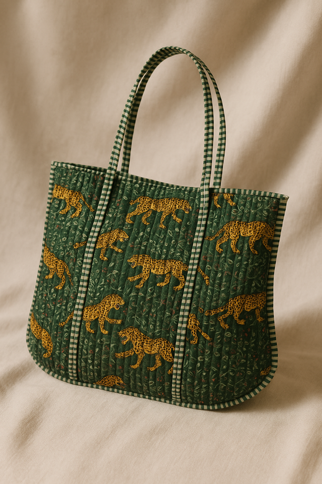 Verdant Leopard Quilted Tote Bag - Bold & Sustainable Statement Carryall