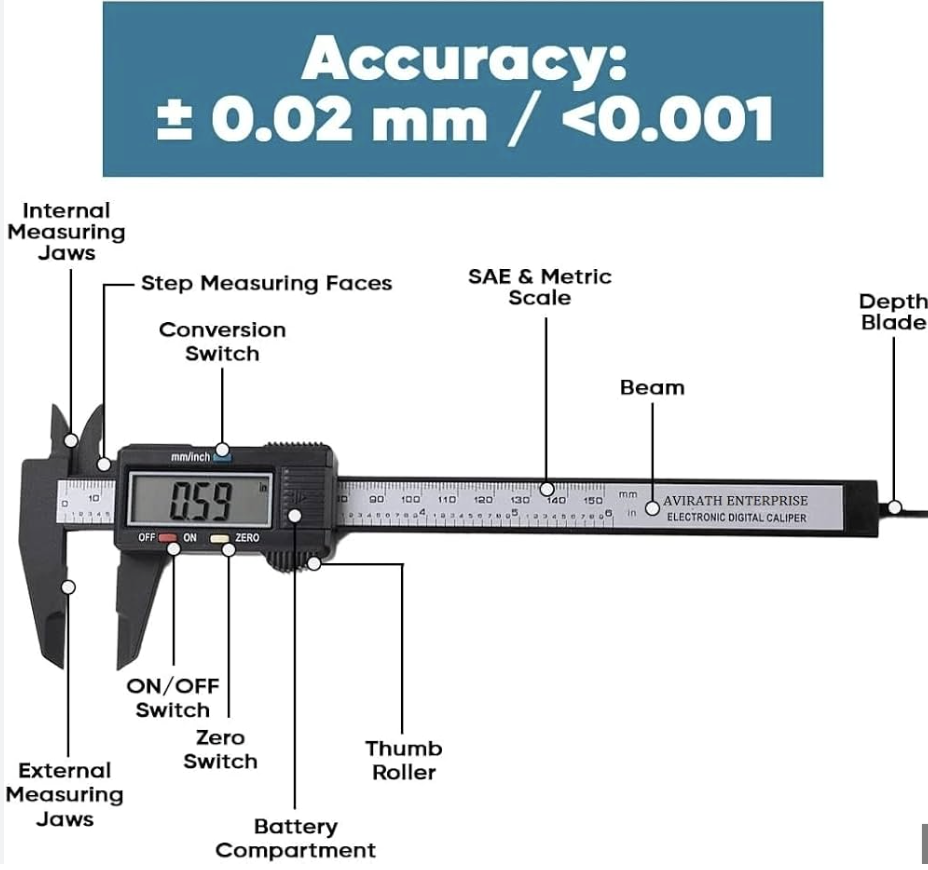Vernier Digital Calliper Electronic Power Educational Supply with 1 Year Warranty
