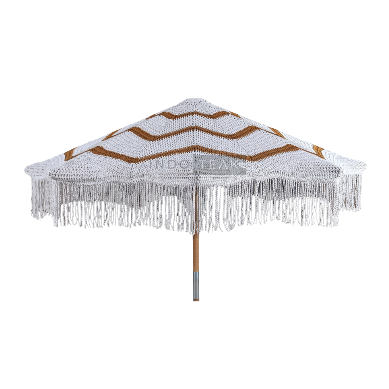 Verona Tropical Macrame Parasol with Durable Teak Wood Pole-Eco-Friendly Anti-UV Sun Shade for Patios & Parks