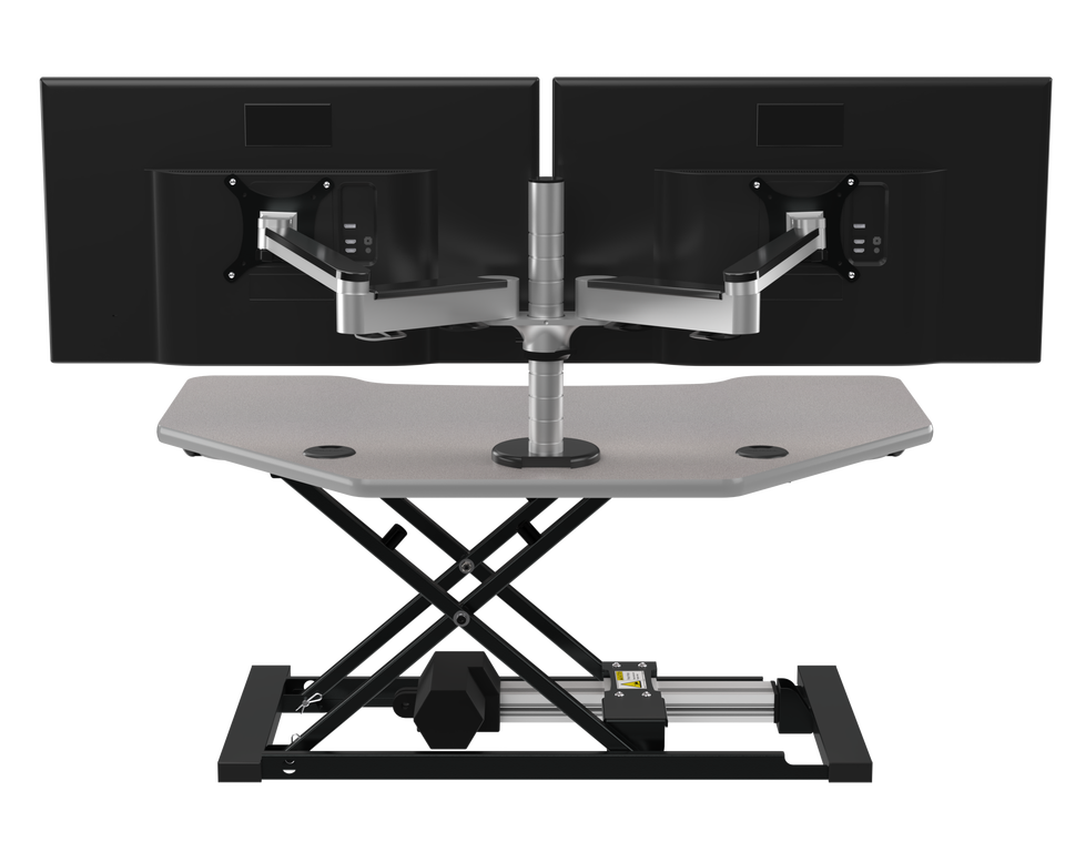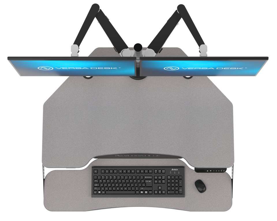 VersaDesk PowerPro Elite Modern Design Electric Corner Standing Desk Converter Programmable with USB Charging Port Mobile APP