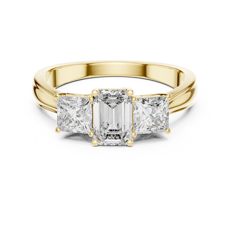 Versatile 1ct Lab Grown Emerald-Cut Diamond Side Princess Cut Ring Band 18KT Yellow Gold Rhodium Plated Luxury Engagement
