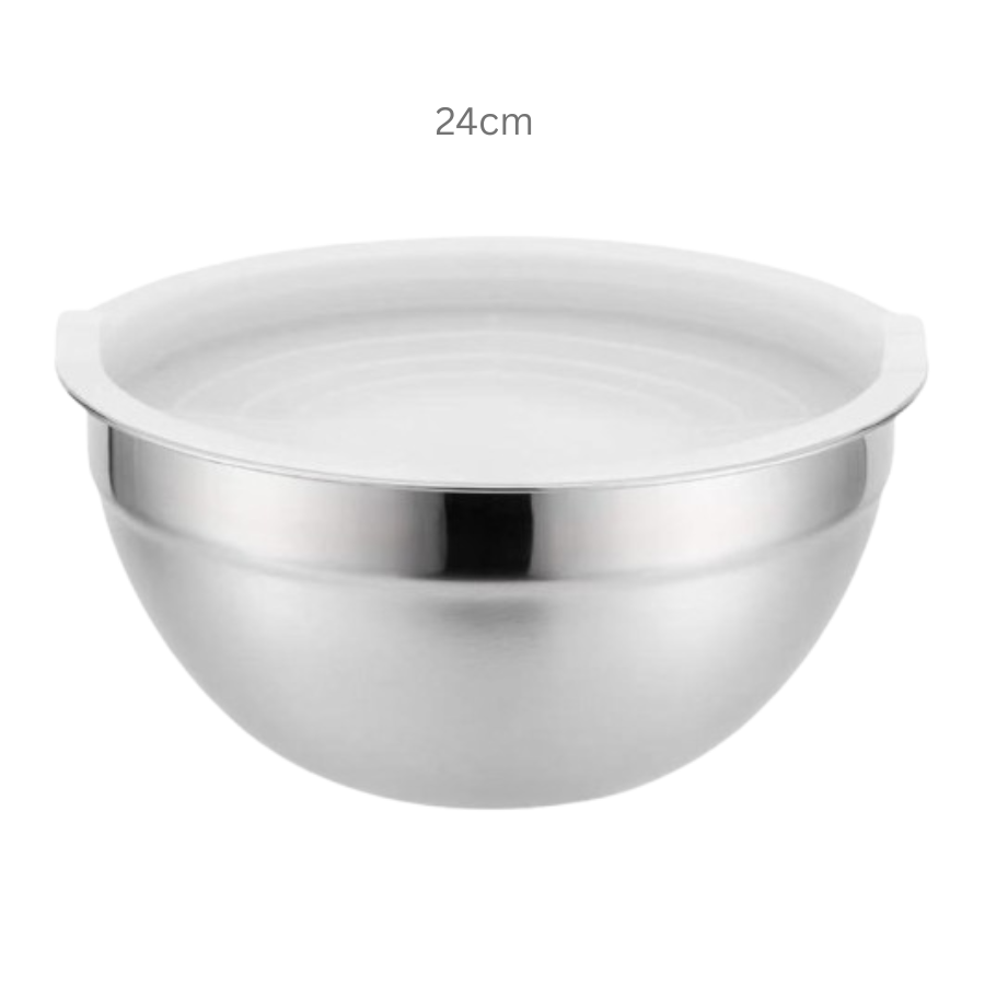 Versatile 24cm Stainless Steel Mixing Bowl with Lid: Perfect for Cooking, Food Storage, and Meal Preparation