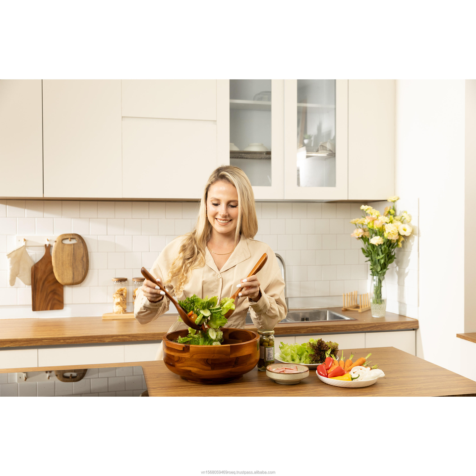 Versatile 3-Piece Polished Lightweight Wooden Salad Spoon Fork Classic Large Vegetable Fruit Mixing Dough Bowl Party-Ready