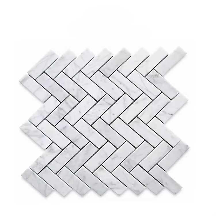 Product Name:Carrara White Marble Herringbone Mosaic Tile