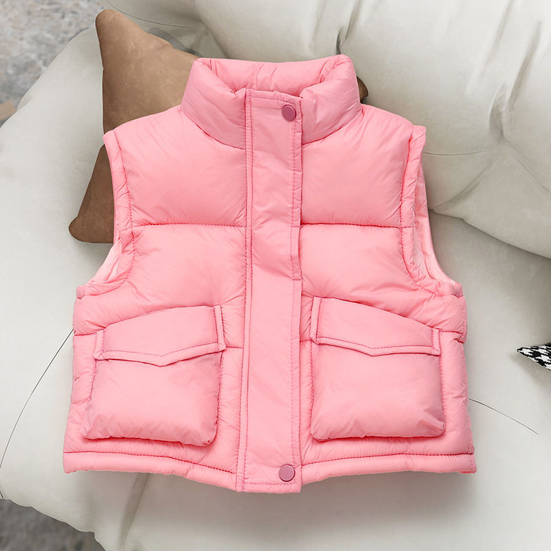 Versatile Sleeveless Vest for Boys Girls Older Children Jacket Large Pocket Stand Collar Solid for Foreign