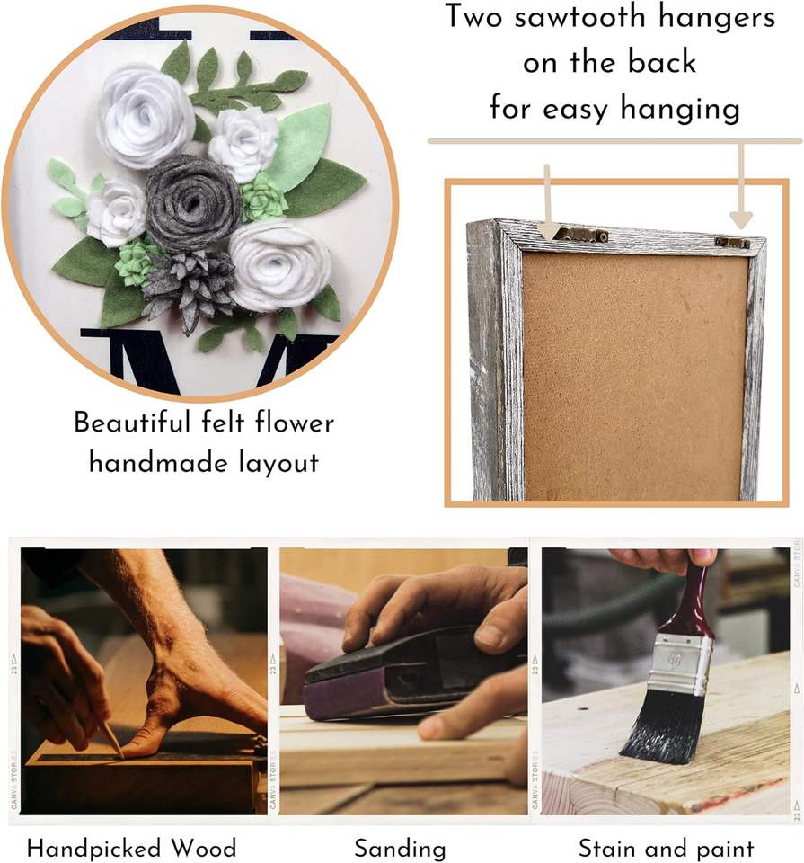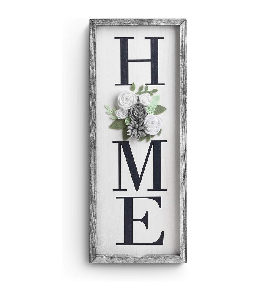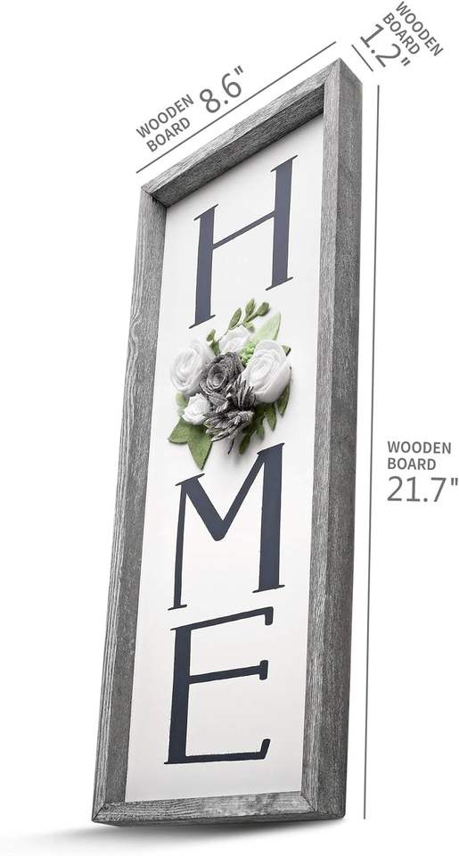 Vertical HOME Sign with Felt Flower - Besuerte Farmhouse Wood Framed Sign for Home Decor, Gallery Wall Art,Home Plaque Wall Hang