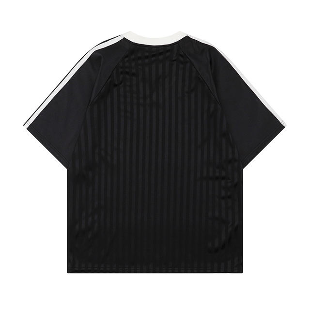 Vertical Striped Letter Printed Sports Jersey Men's Summer American Street Casual Loose Color Block Short Sleeve T-Shirt Top