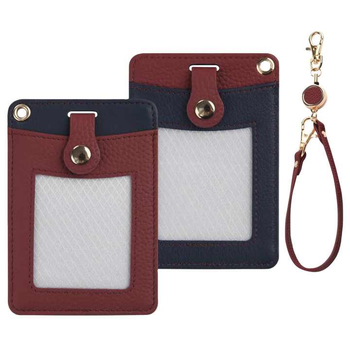 Vertical Style Litchi Pattern Contrast Color PU Business Card Easy Pull Buckle Work Permit Adjustable Lanyard