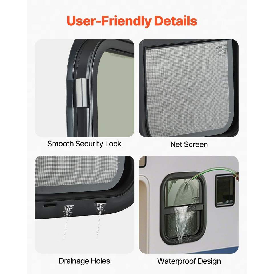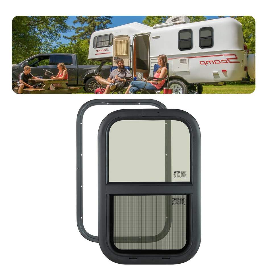 Vertical Tinted Sliding RV Window 14\" W X 22\" H Net Screen Trim Ring for 15/16\" 1 3/4\" Thickness Walls RV Interior Accessory