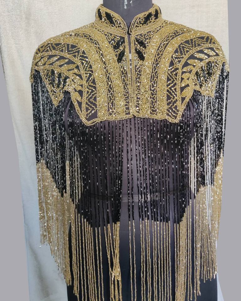 Beautiful gold and black hand embroidery with long hand beaded Fringes