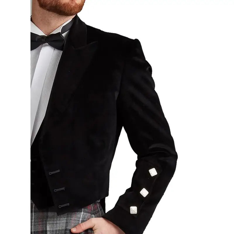 Vest Formal Style of Kilt Argyll Jacket for Kilt All Sizes Black Prince Charlie Wool Jacket with Vest for Music Festivals