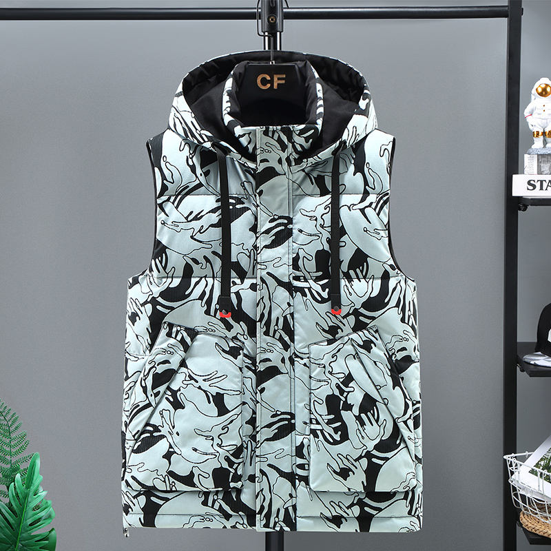Vest men's sleeveless coat in autumn and winter thickened trend frock down cotton camouflage men's warmth top comfortable