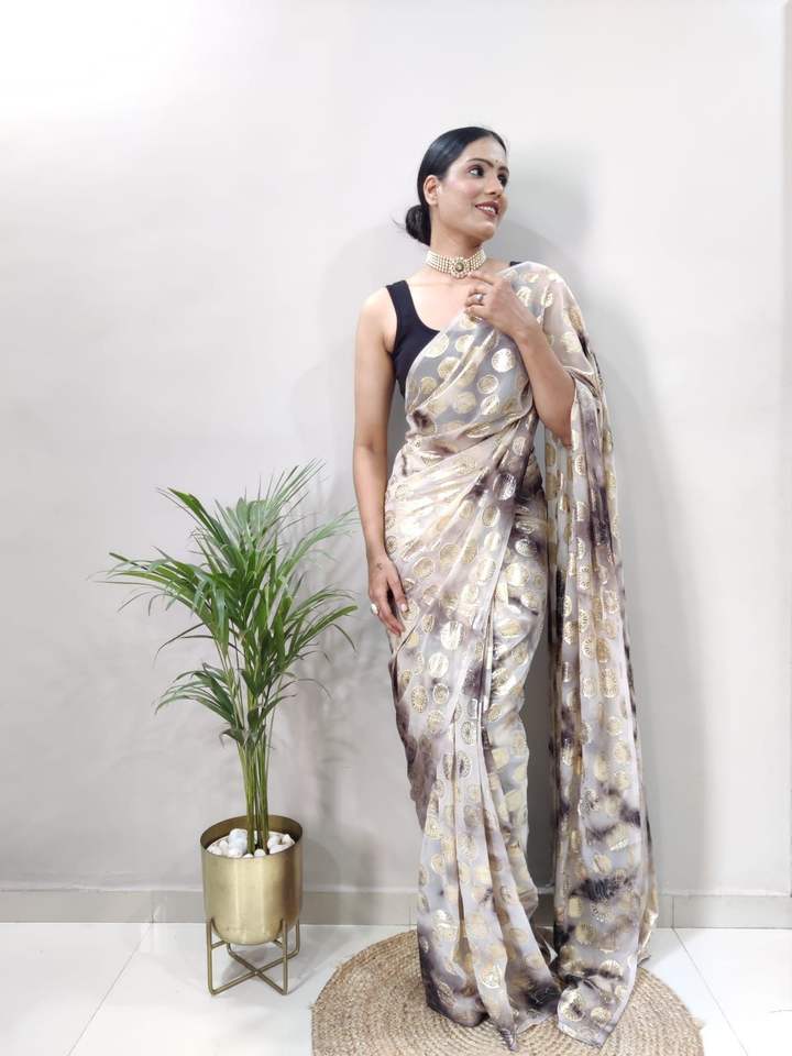 Vesta Exports Exclusive NEW READY to WEAR 1 MIN SAREE REAL MODEL SHOOT Silk Georgette Winter Party Wear Wrinkle-Free Stretchable