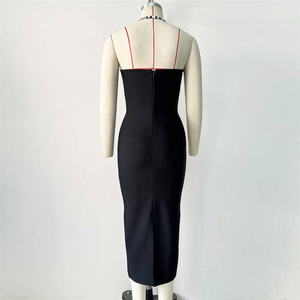 TD Black Tube Body-Con Midi Evening Dress with Snap on Feature