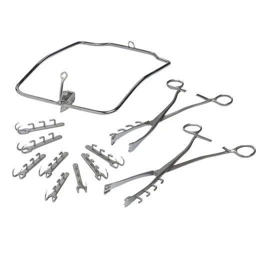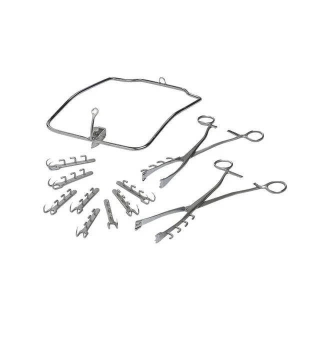Veterinary Rumenotomy Instruments Set with Frame, Vulsellum Forceps & Fixation Hooks By Blush Surgical