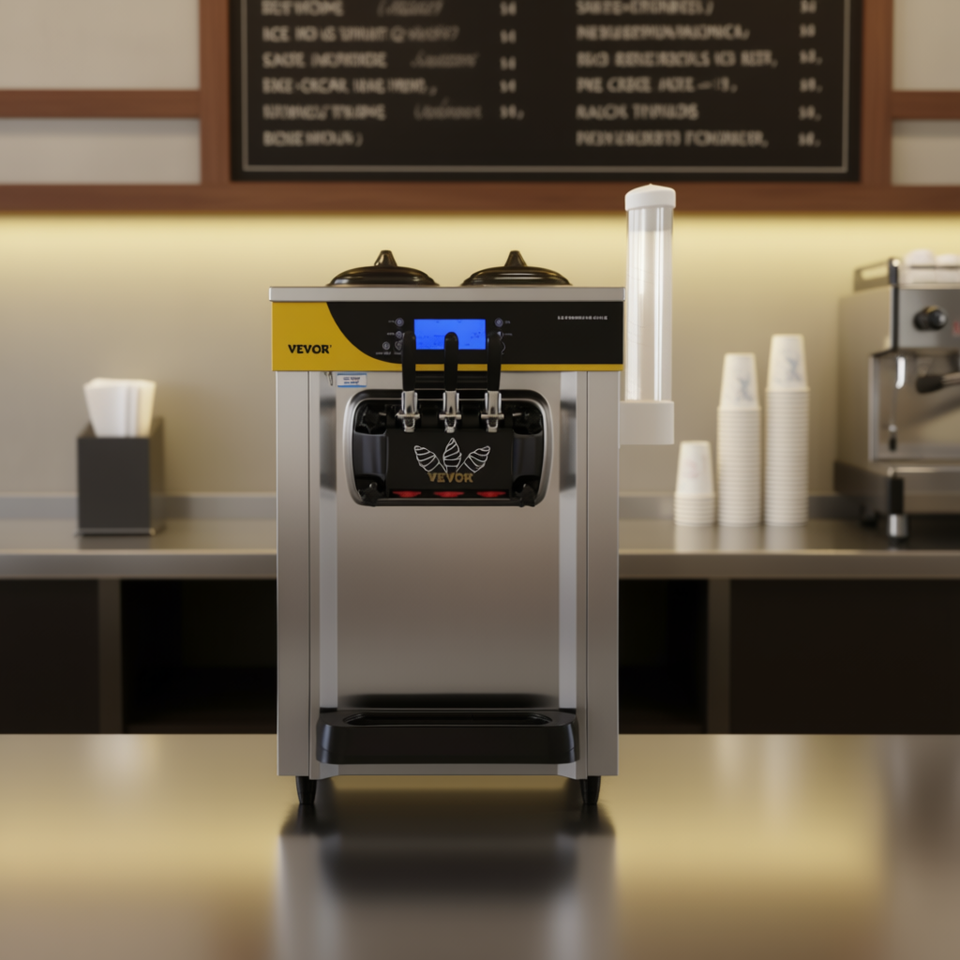 Vevor Commercial Ice Cream Maker 2200W 22-30L/H Soft Serve Machine Stainless Steel LCD Panel 2x6L Hopper