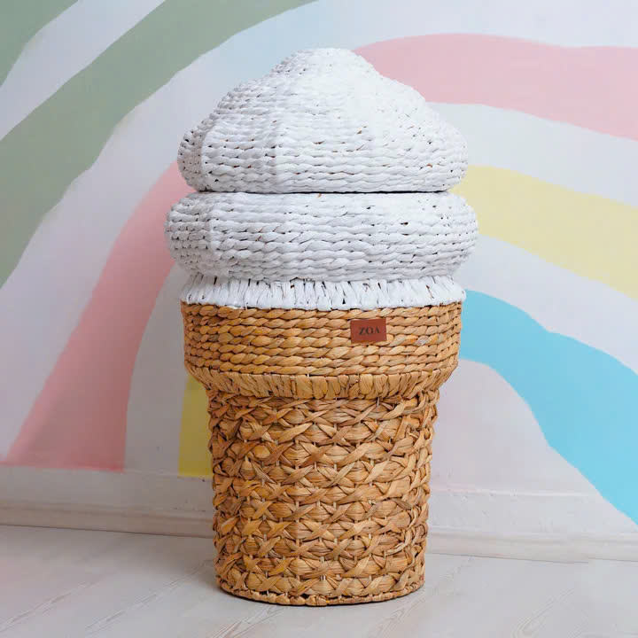Vgreen Art Best-Selling Kid's Water Hyacinth Storage Baskets Hot Ice Cream Cone Hamper and Laundry Basket