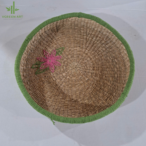 Vgreen Art Wholesale Handwoven Seagrass Storage Basket with Embroidered Decoration Woven Lid Multifunctional for Laundry Use