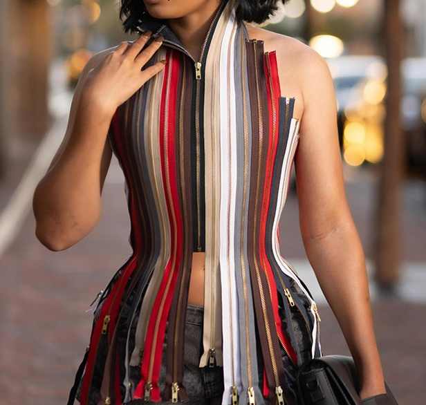 ViViblook Z0121TP01 Summer New Street Colorful Stripe Halter Tie Multiple Zip Bandage Backless Irregular Tank Top for Women