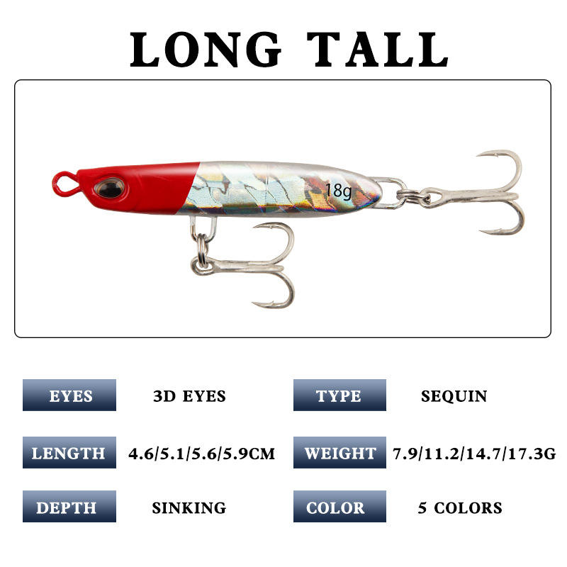 Vibra Lure Sinking Metal Jig 18g Bottom Bait For Bass Fishing With Triple Hooks