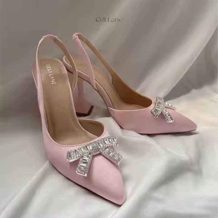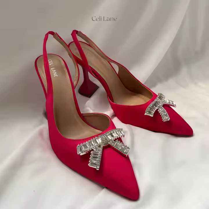 Product Description:Satin material - bow with stone decoration - 9 cm heel