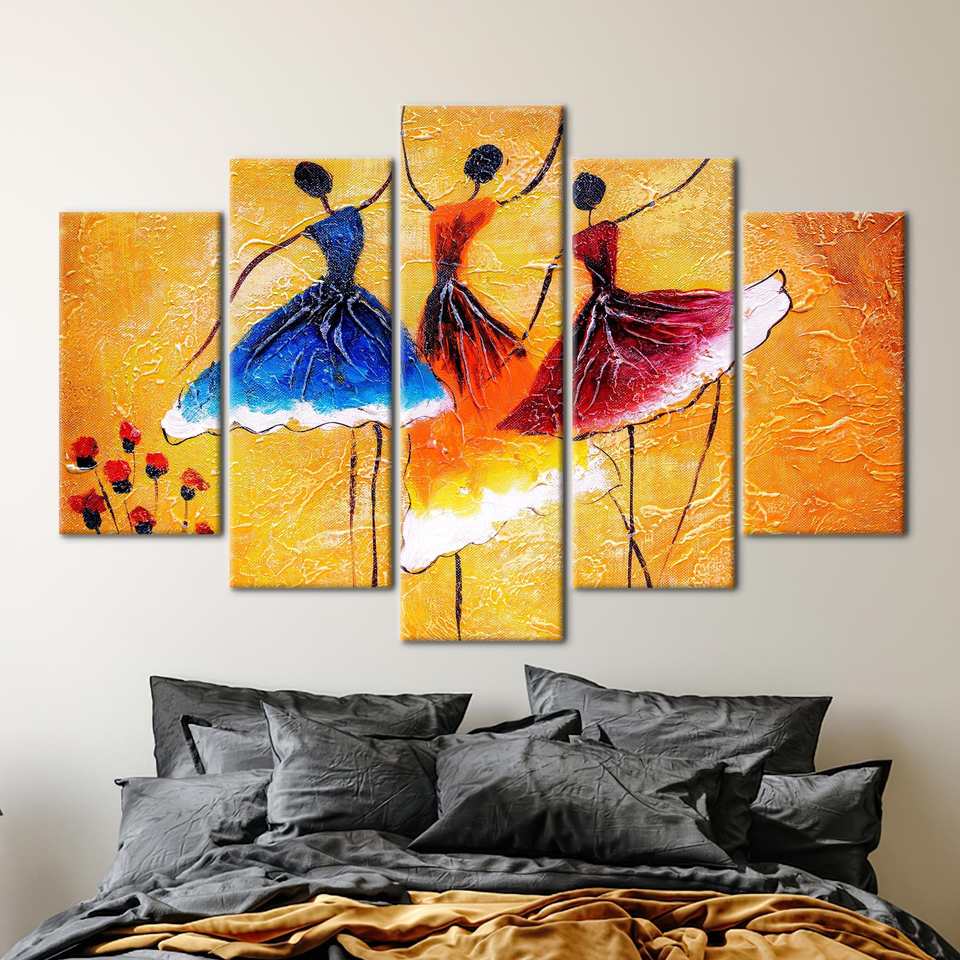 Vibrant Ballerina Canvas Print - Elegant Dance Art for Home Decor,5P Mix:Gallery Wrap
