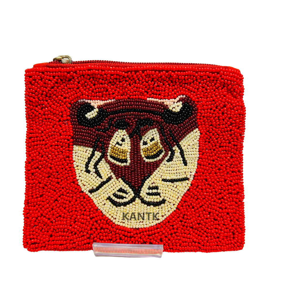 Vibrant Blue Beaded Pouch with Gold Fleur De Lis and Dot Pattern Artisan Hand-Beaded Eco-Friendly Casual Mini Purse
