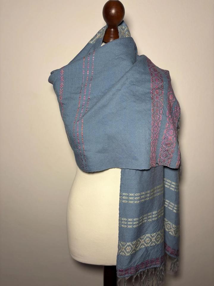 Vibrant Blueish Grey Kashmiri Shawl Soft Cashmere Wool with Thread Embroidery Festive and Daily Styling Perfect