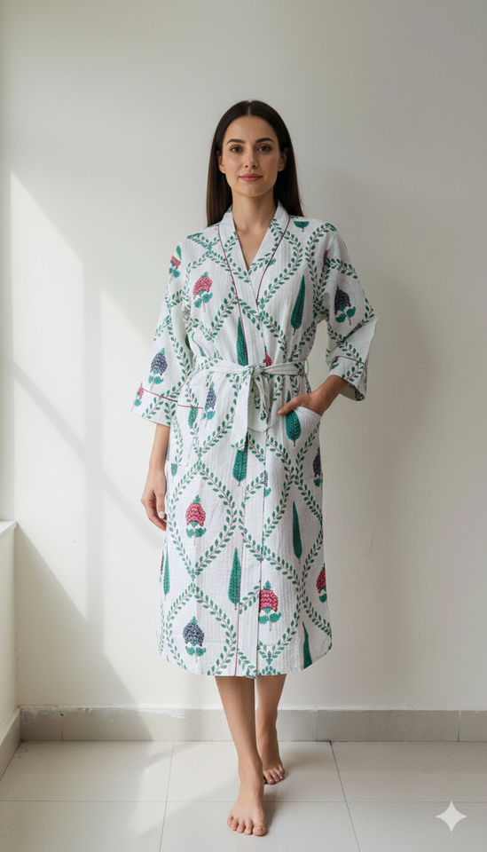 Vibrant Cotton Waffle Bath Towel Luxury Hand Block Floral Print Soft Breathable Eco-friendly Strong Water Absorption Multi Color