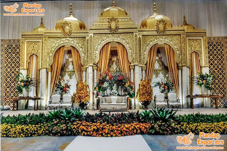 Vibrant Gold Theme Tamil Wedding Stage