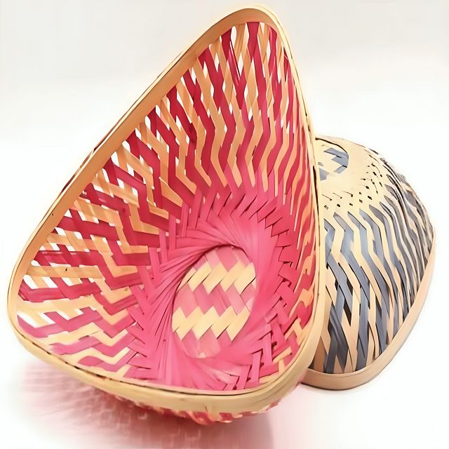 Vibrant Handwoven Bamboo Baskets with Pink and Black Swirl Design Eco-Friendly Decorative or Serving Bowls