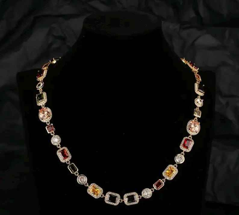 Vibrant Multi Gemstone Tennis Necklace Handset Colorful Crystal