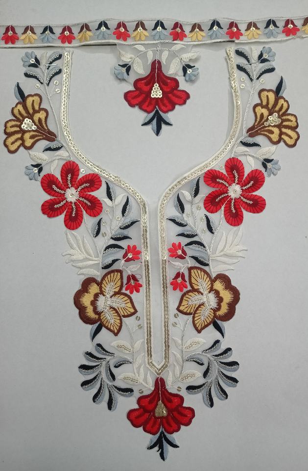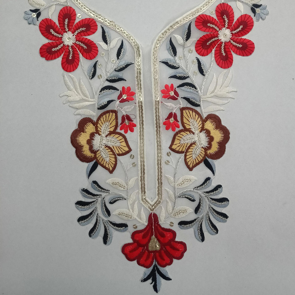 Vibrant Net Fabric Embroidered Neck Collar with Sequin Work for Bridal Blouse Gown Kurtis Saree-Fashion and Tailoring Patches