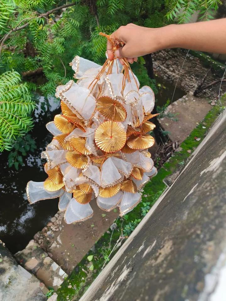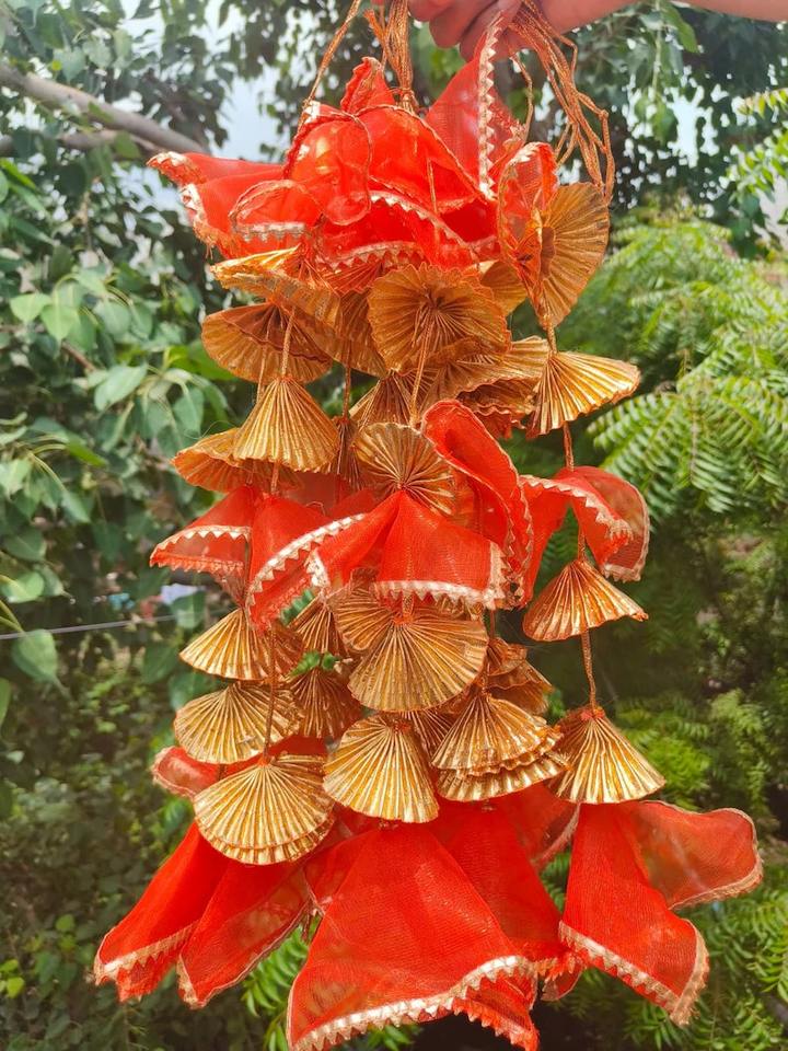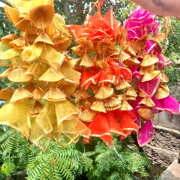 Vibrant Net Tassel & Gota Lace Flower Strings 2 Feet Gota Phool Strings for Indian Wedding Mehndi Haldi Festival Party Backdrop
