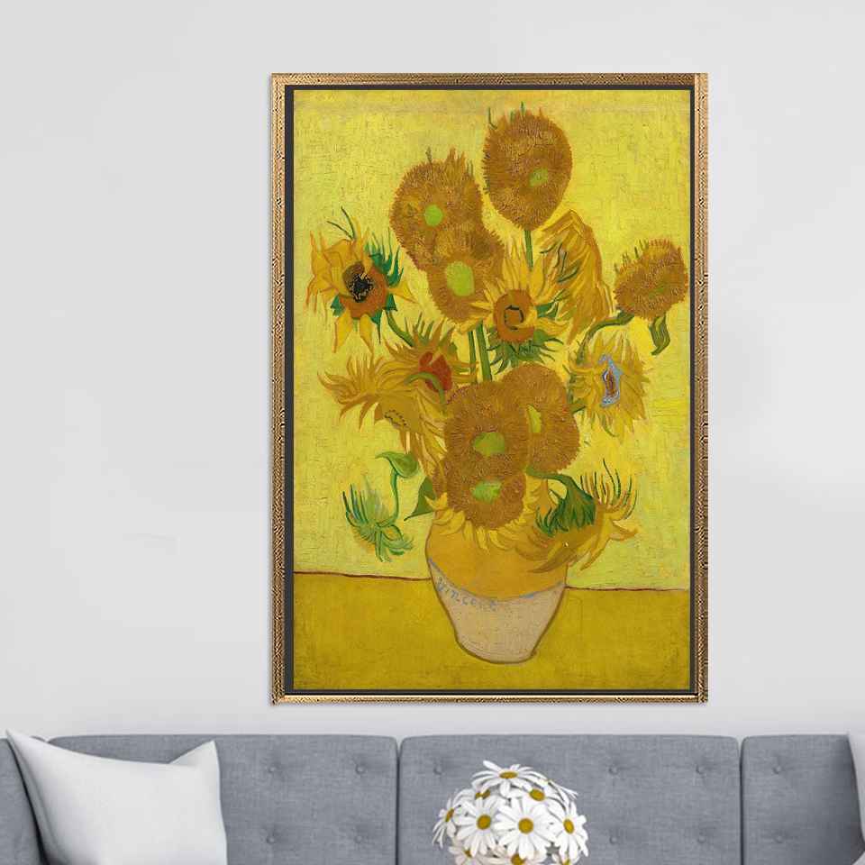 Vibrant Van Gogh Sunflowers Canvas Print Art, Modern Home Decor,GOLD FRAMED CANVAS