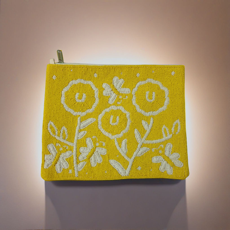 Vibrant Yellow Beaded Floral Pouch Handmade Bead Embroidery Coin Purse Summer Boho Zipper Colorful Fashion Accessories for Gifts