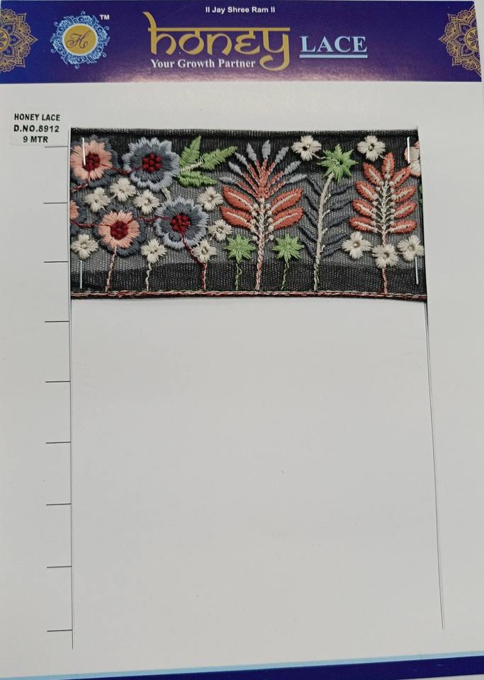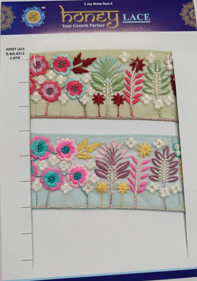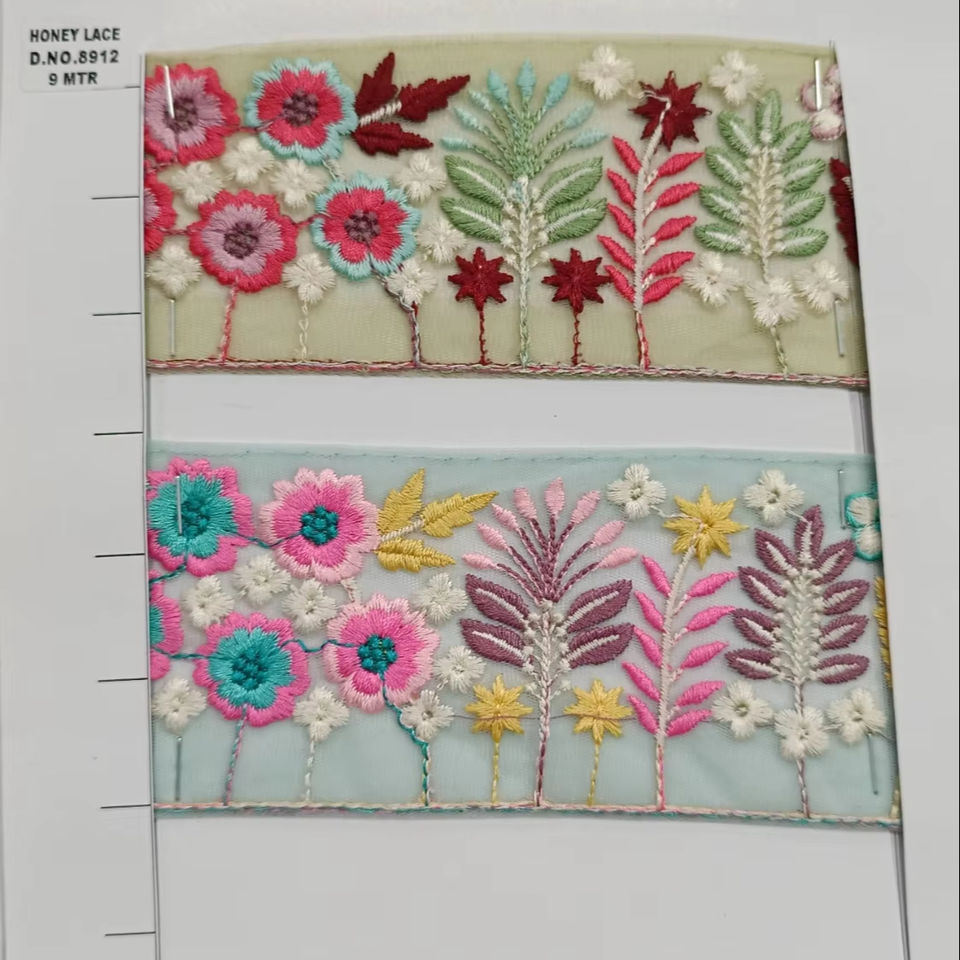 Vibrant and Detailed Colorful Floral Embroidered Lace Fabric With Intricate Patterns, Perfect for High-End Fashion