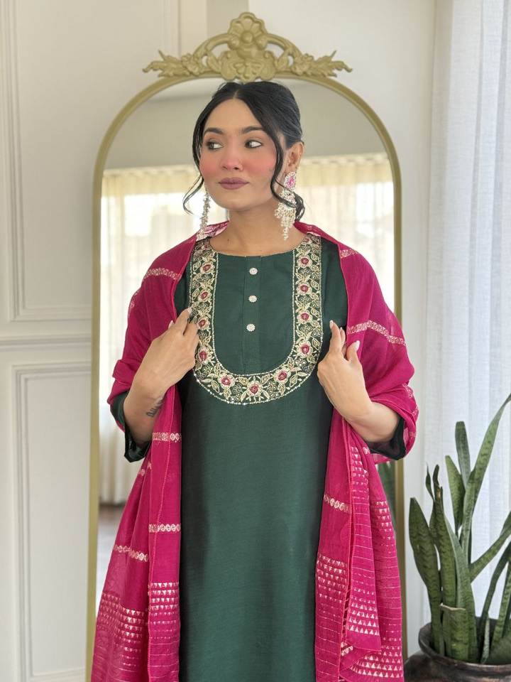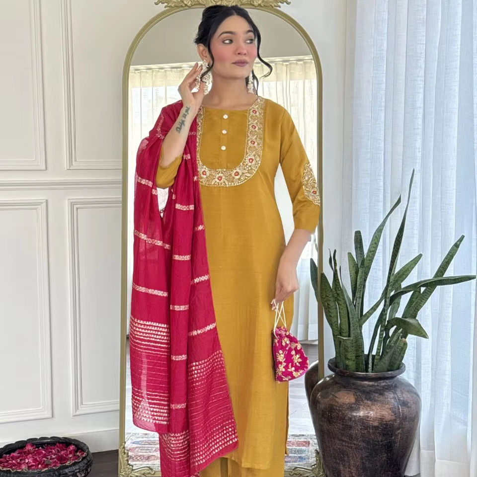 TOP FABRIC ::VICHITRA SILK WITH SEQUENCE CODING EMBROIDERY WORK*