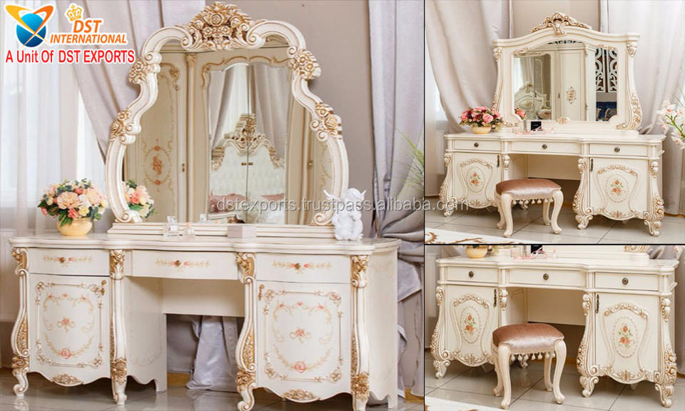 Victorian Console Table Mirror Set Modern Teak Wood Design Golden Carved Finish Customizable Color Durable Living Room Furniture