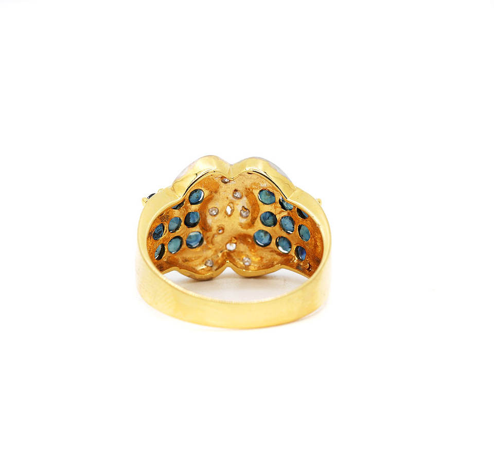 Victorian Design 14K Solid Yellow Gold Wedding Ring Diamond Blue Sapphire 925 Sterling Silver Classic IGI Certified Wholesale