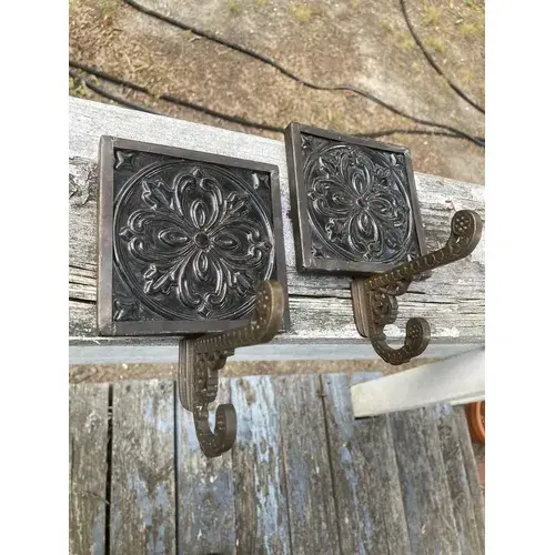 Victorian Pair of 4î Solid Brass Eastlake Wall Hooks Clothing Organizer for Home Decoration in Kitchen 4î Chocolate Brown Tiles