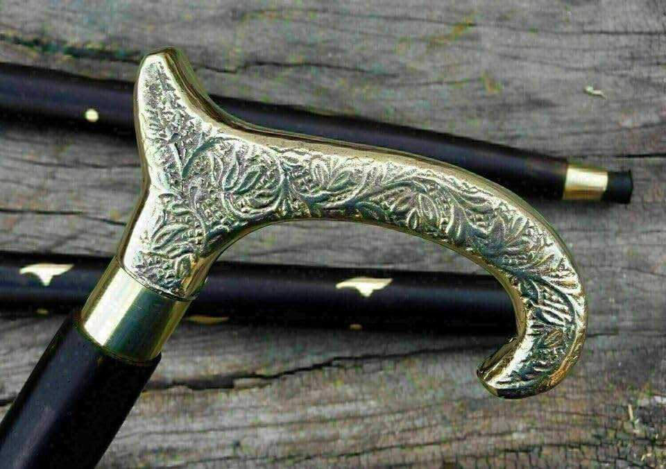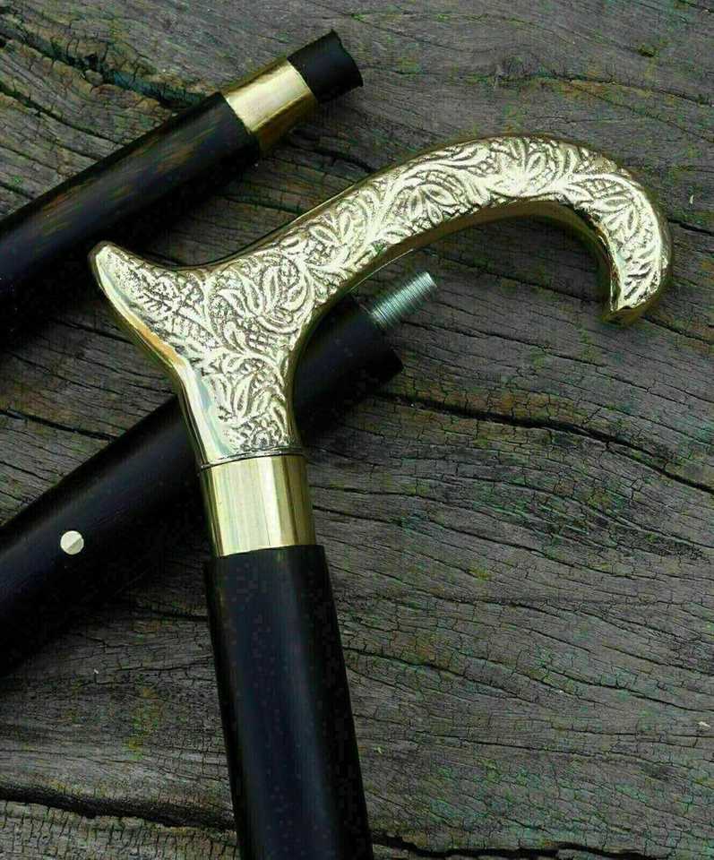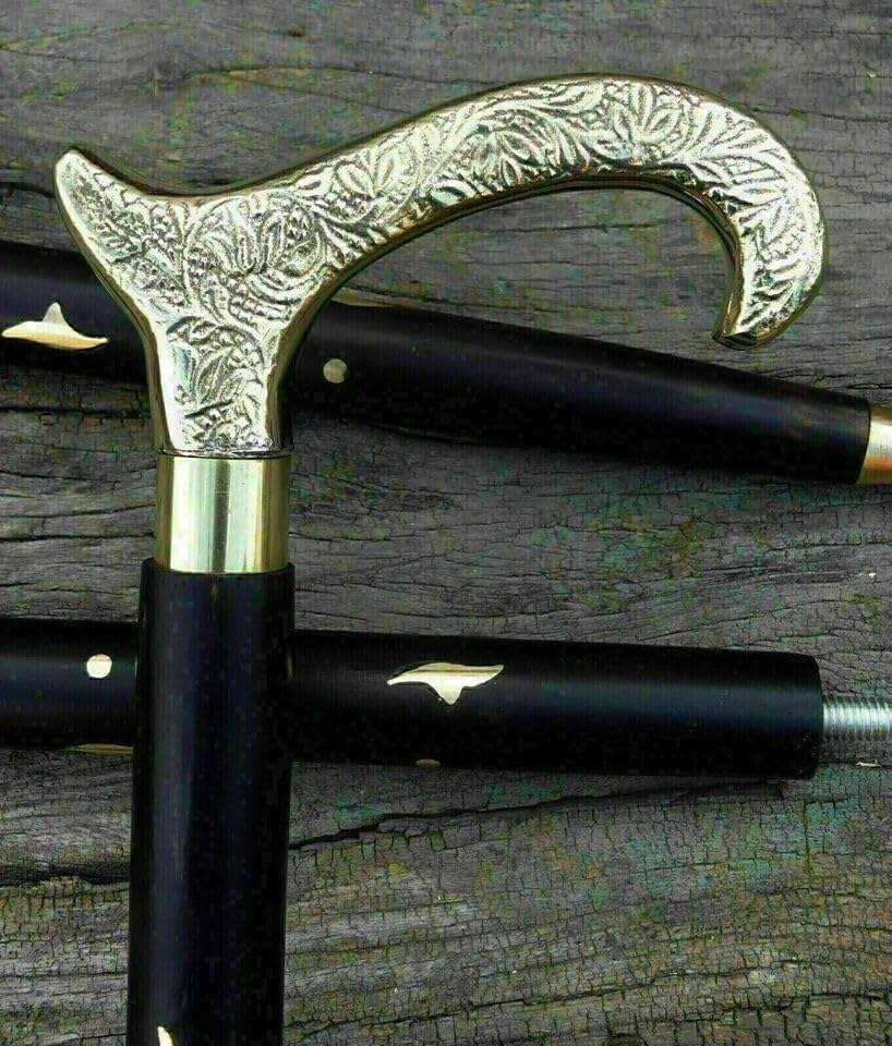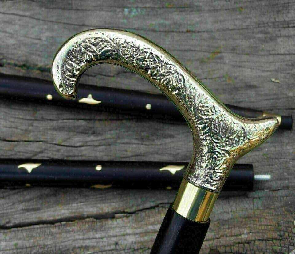 Victorian Steampunk Folding Walking Stick Handcrafted Wooden Cane with Brass Handle Decorative Collectible Gift & Personal Use