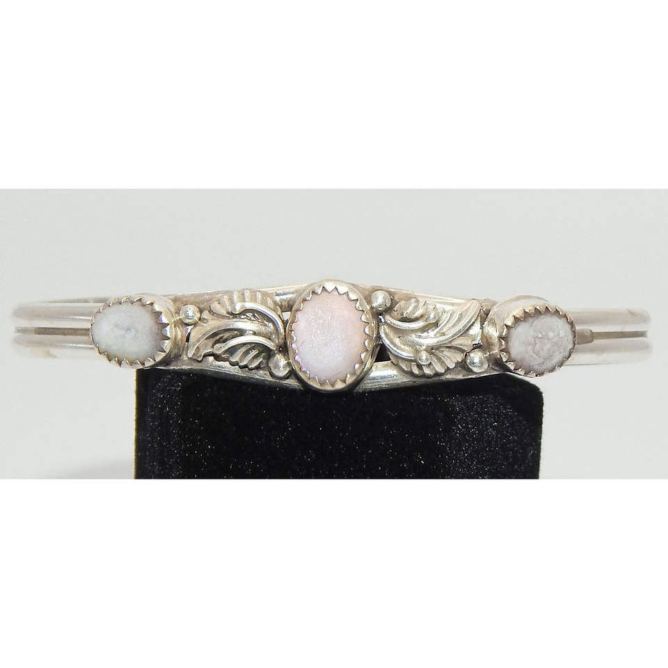 Victorian Style .925 Sterling Silver Beaded Bracelet with White Opals