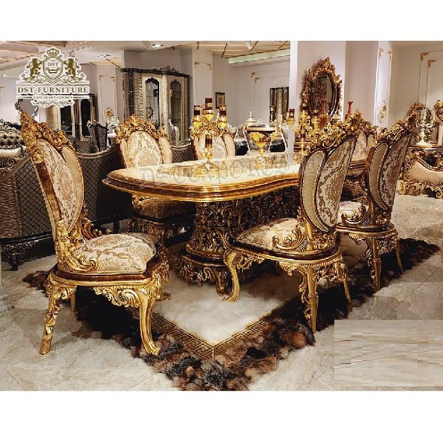 Product name:Victorian Style Gold Polished Dining Table & Chairs