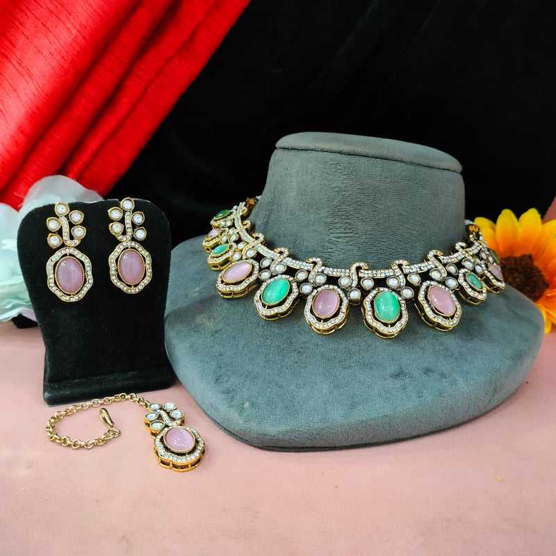Victorian Zircon And Moissanite Necklace Set With Maang Tikka Style With A Traditional Saree, Lehenga & Fusion Gown Regal Appeal