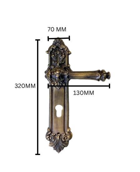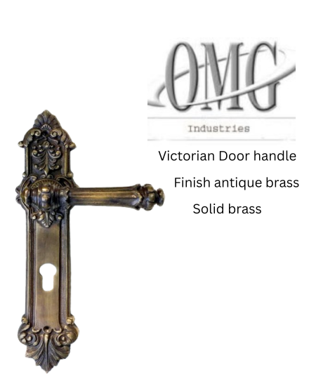 Victorian style door handle with back plate antique brass finish lever door handle
