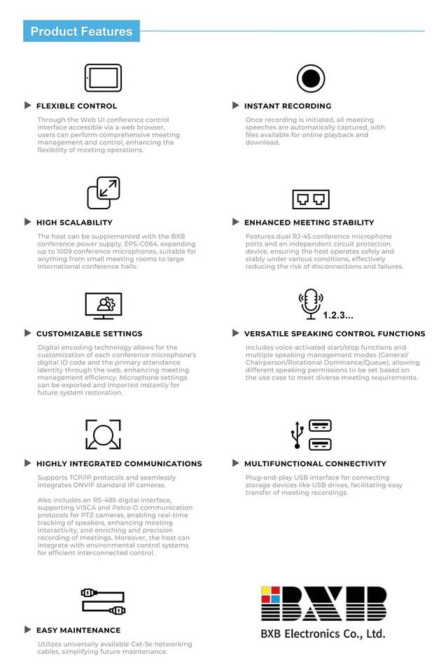 Conference modes:Normal, Chairman, Override mode, FIFO