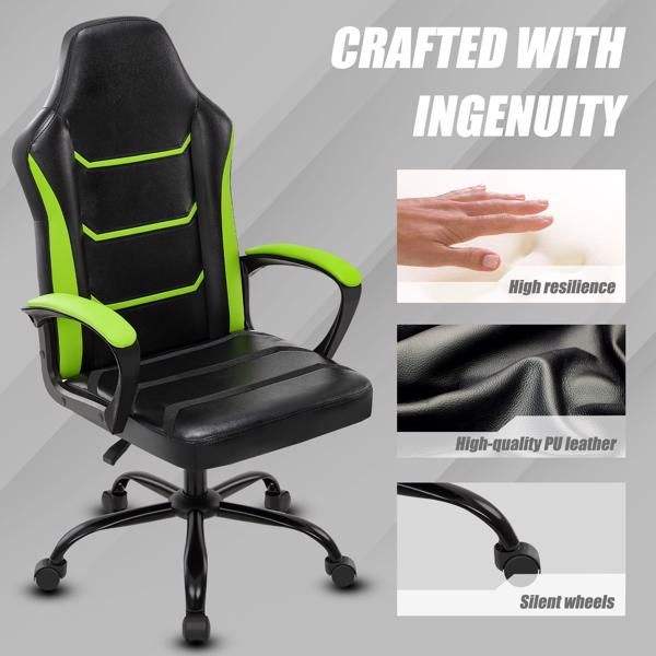 Video Gaming Computer Chair with Adjustable Height Swivel PU Leather Executive Wheels Desks Office Chair with Arms