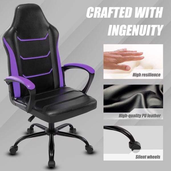 Video Gaming Computer Chair with Adjustable Height Swivel PU Leather Executive Wheels Desks Office Chair with Arms