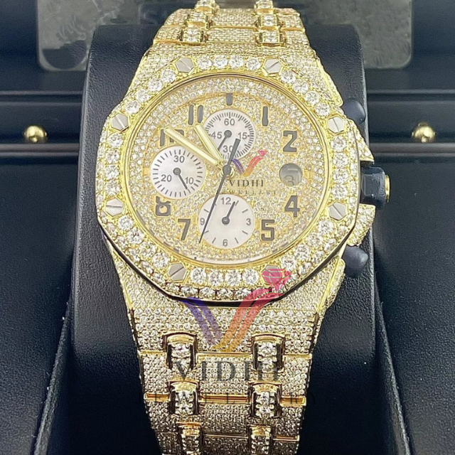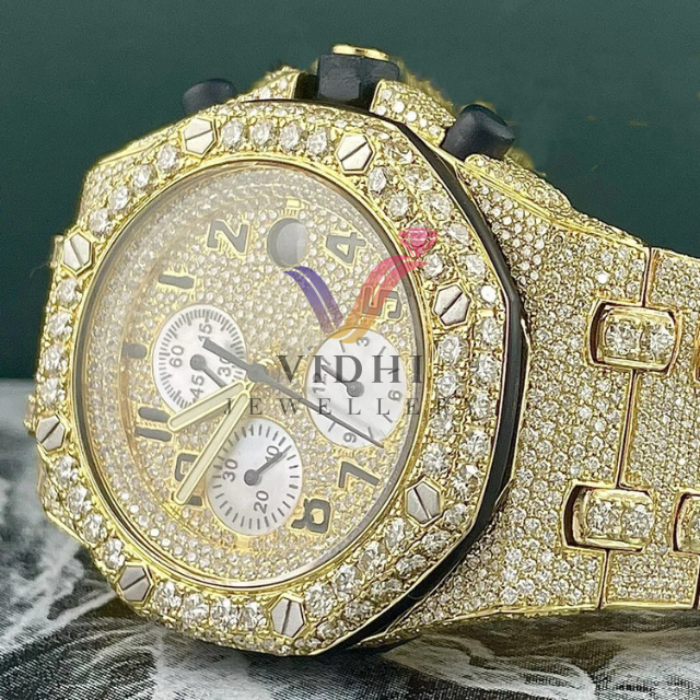 Vidhi 2024 Luxury Men's Mechanical Watch ETA Movement Stainless Steel Band Customizable 30mm White Gold VVS Moissanite Diamond